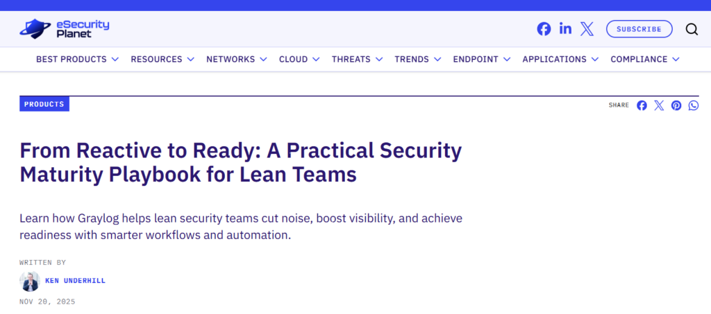 For lean and resource-constrained security teams, security maturity represents the ability to consistently detect, respond to, and learn from threats with clarity and efficiency despite limited headcount, mounting complexity, and expanding attack surfaces.